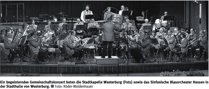 Blasmusiker faszinierten Zuhörer Stadtkapelle Westerburg und Sinfonisches Orchester aus Hessen begeisterten mit Filmmelodien, Tanzmusik und Märschen Anspruchsvolle Literatur, inspiriert von verschiedenen Kulturen, brachte das Sinfonische Blasorchester Hessen in die Stadthalle Westerburg mit. Der erste Part des Gemeinschaftskonzertes wurde von der Stadtkapelle gestaltet. WESTERBURG. "Dem Himmel so nah" lautet der Titel eines romantischen Films und eines inspirierenden Gemeinschaftskonzerts, das in Westerburg stattfand. Akteure waren die Stadtkapelle Westerburg und das Sinfonische Blasorchester Hessen. Nach langem, nicht enden wollenden Applaus, ließen die beeindruckten Zuhörer das hessische Konzertorchester nur zögernd gehen. Fasziniert sagte ein Mann: "Man kann kaum glauben, dass Blasinstrumente solche Klänge hervorbringen können." Anspruchsvolle Literatur, inspiriert von verschiedenen Kulturen, hatte Dirigent Ralf Lange ausgewählt. Die Volkstänze "Heimatliches Leningrad" leiteten die Darbietungen mitreißend ein. Der oft unbequeme Schostakowitsch zeigte sich von seiner einladenden Seite. Die Reise über die Kontinente führte anschließend nach Armenien. Alfred Reeds Wunsch, Lebenswelt und Kolorit von Epochen und Regionen ins musikalische Geschehen zu übernehmen, folgte auch Owen Reed mit "La Fiesta Mexicana". Wer bei letzterem Titel auch nur vage an ähnlich lautende Schlager dachte, wurde vollends enttäuscht. Die Fantasie über eine kulturelle Eigenheit enthielt sich jeglicher musikalischer Plattitüden. Das Geläut der Kirchturmglocken, Feuerwerk, volkstümliches Liedgut und Reflexionen über einen Gottesdienst verwoben sich zu einem einzigartigen sinfonischen Gespinst. Innovativ und wegweisend ist die Musik von Fred Armbruester. Auch seinem Weg zum "Spirit of Africa" folgten die herausragenden Musiker mühelos. Das Euphonium von Solist Hans-Reiner Schmidt wurde dabei zum Vorsänger, dem das Orchester Rede und Antwort steht. Reiner Schmidt ist ein vielseitiger und erfolgreicher Musiker, Komponist und Arrangeur. Er spielt unter anderem im Radio-Sinfonie-Orchester Frankfurt/Main. Unter der Leitung von Ralf Lange (Kapellmeister am Dortmunder Opernhaus) treffen sich rund 60 professionelle und semi-professionellen Musiker aus allen Teilen Hessens mehrfach im Jahr zu intensiven Projektphasen. Solche Übungstage waren auch dem Konzert in der Westerburger Stadthalle vorangegangen. Tatsächlich vermochte das Sinfonische Blasorchester Hessen den Himmel näher zu rücken, was die rund 250 Zuhörer deutlich zu schätzen wussten. Natürlich erntete die Stadtkapelle Westerburg, unter der Leitung von Martin Hommerich, mit ihren Darbietungen ebenfalls viel Beifall. Ihre Stückauswahl konkurrierte nicht der der Gäste. Die "Mozart Pop Symphony" von Sahashi verband Klassik mit Pop und schmissigen Big-Band-Tönen. zart fühlend und sanft spielten sie "The Lion King" von Elton John, ein Medley aus dem beliebten Musical. Wie schön Märsche sein können, zeigten die Kompositionen von John Williams: "Midway March" und ganz besonders "The March from 1941". Wer Blasmusik nur aus dem Musikantenstadl kennt, dem sei schlicht gesagt, dass auch diese Auswahl nichts mit der althergebrachten "Dicke-Backen-Musik" zu tun hat. Gut zwei Stunden hatte das Konzert gedauert, die Nachwirkungen werden noch lange positiv zu spüren sein. Oder, um es mit ABBA zu sagen, deren Melodien ebenfalls zu Gehör kamen: "Thank you for the music." Tatjana Steindorf |